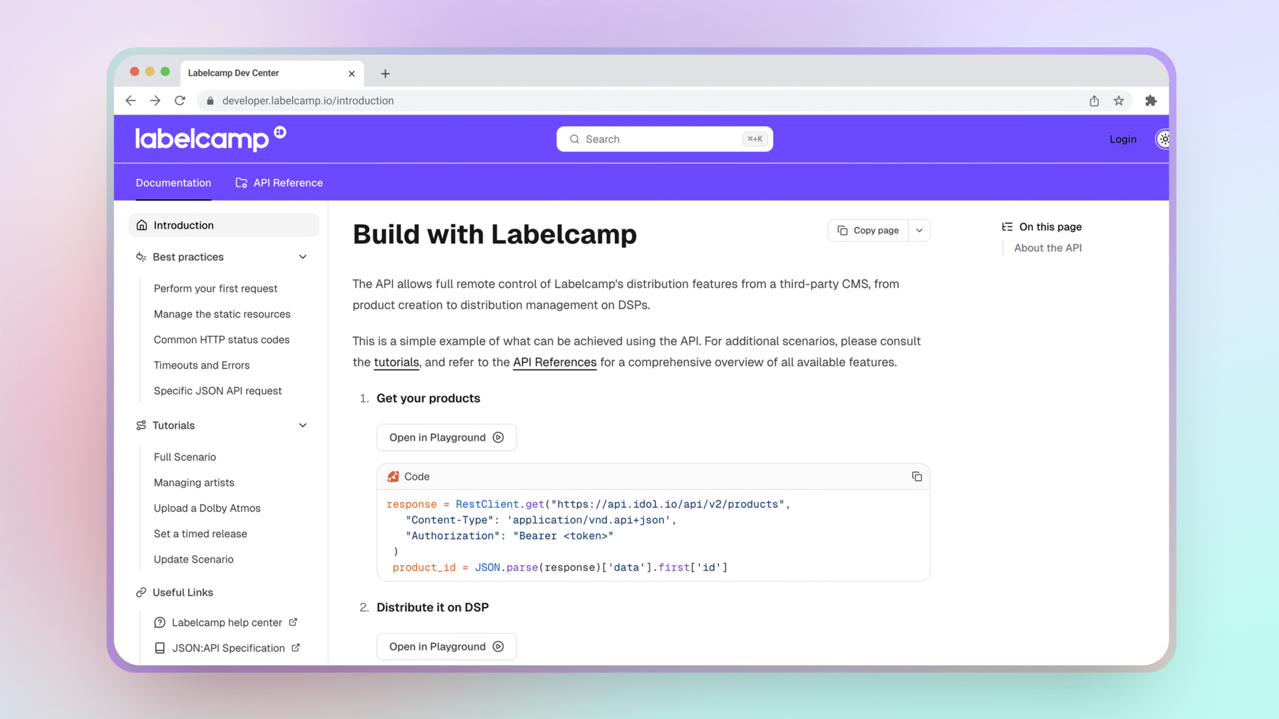 Available at our DEV Center, the documentation offers an improved structure and expanded explanations to help teams get started quickly and confidently. It covers the full scenario process from content creation to delivery to a DSP, alongside core concepts, API endpoints, authentication flows, and best practices, making it easier to build, test, and scale integrations with the Labelcamp platform.